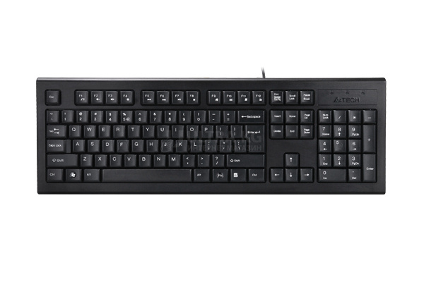 Клавиатура A4Tech KR-85, мембранная, 104btns, USB, COMFORT ROUND EDGE Клавиатура рус/англ/кырг, 1.5m, Черный -Т