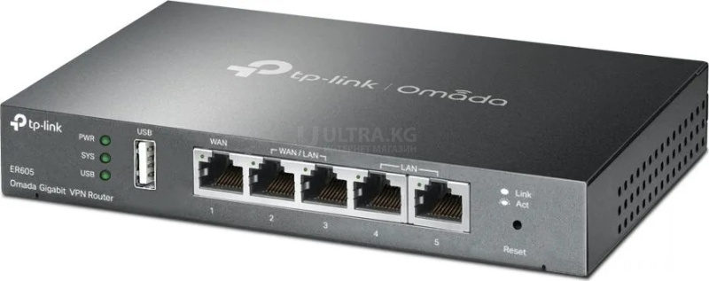 Маршрутизатор гигабитный TP-Link ER605 (WAN: 3x1Gb/s, LAN: 4x1Gb/s, 100 Users, VPN, Omada) 8W