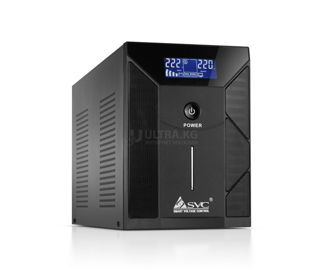 ИБП UPS SVC V-2000-F-LCD, 2000VA(1200W), Диапазон AVR: 175-275ВА, Выход 220В +/-10% * 4 выхода Schuko CEE7, 12V/9Ah x 2, 50Hz, USB (технология Smart), LCD Display, Черный